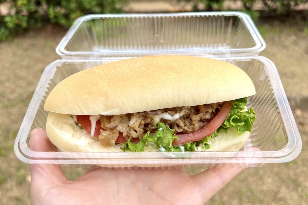 店内の鉄板で焼き上げた薄切り牛肉を挟んだ「鉄板!焼肉コッペ」460円