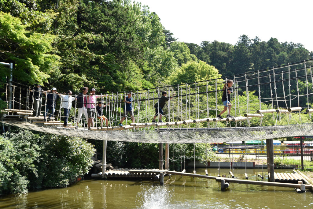 フィールドアスレチックは、全100ポイントの本格的なコースで、体力やバランス感覚を試すことができます。水上アスレチックもあり、スリル満点の体験が待っています。