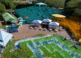 アクアベンチャーは、2022年7月にリニューアルオープンした水遊び施設で、「アクアゾーン」と「迷路ゾーン」の2つのエリアに分かれています。アクアゾーンでは、噴水やジャブジャブ池、滑り台などで思い切り水遊びが楽しめます。迷路ゾーンでは、森の中に設けられた迷路に挑戦し、頭と体を使ってゴールを目指します。