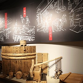 隣接する「しょうゆ味わい体験館」では、醤油の歴史を学べる展示のほか、きき味体験や、醤油の香り・色・味の違いを五感で楽しめるコーナーもあり、子どもから大人まで興味深く見学することができます。また、名物の「醤油ソフトクリーム」や、オリジナルの醤油商品などお土産選びも楽しい時間を過ごせることでしょう。