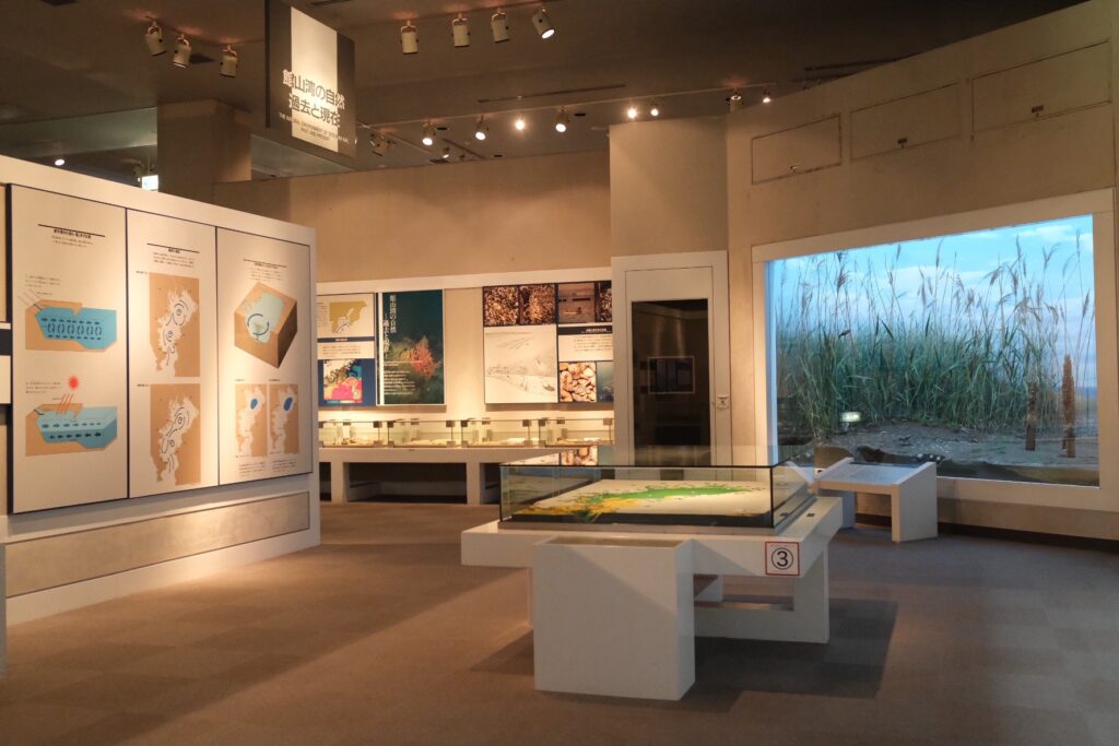 常設展示は「房総の自然誌」「房総の歴史」「自然と人間のかかわり」の3つの主要な展示から構成され、生きた小動物が観察できる展示コーナーもあります。
