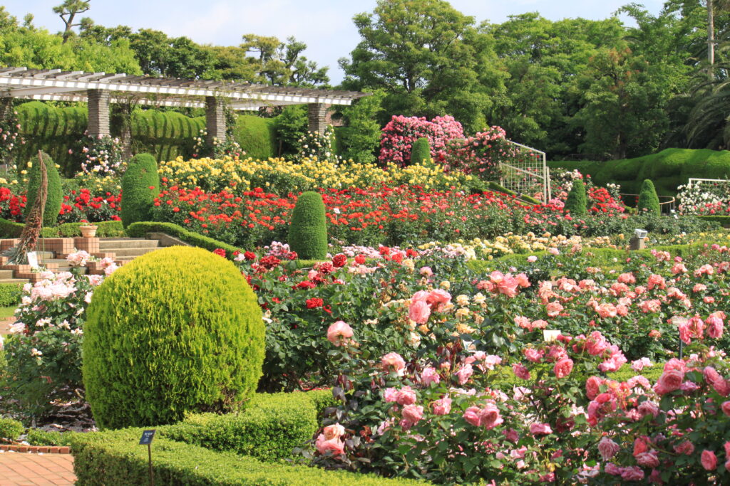 千葉県習志野市に位置する「谷津バラ園」は、約1万2,600平方メートルの敷地に800種7,500株のバラが咲き誇る、四季折々の美しさを楽しめるバラ園です。