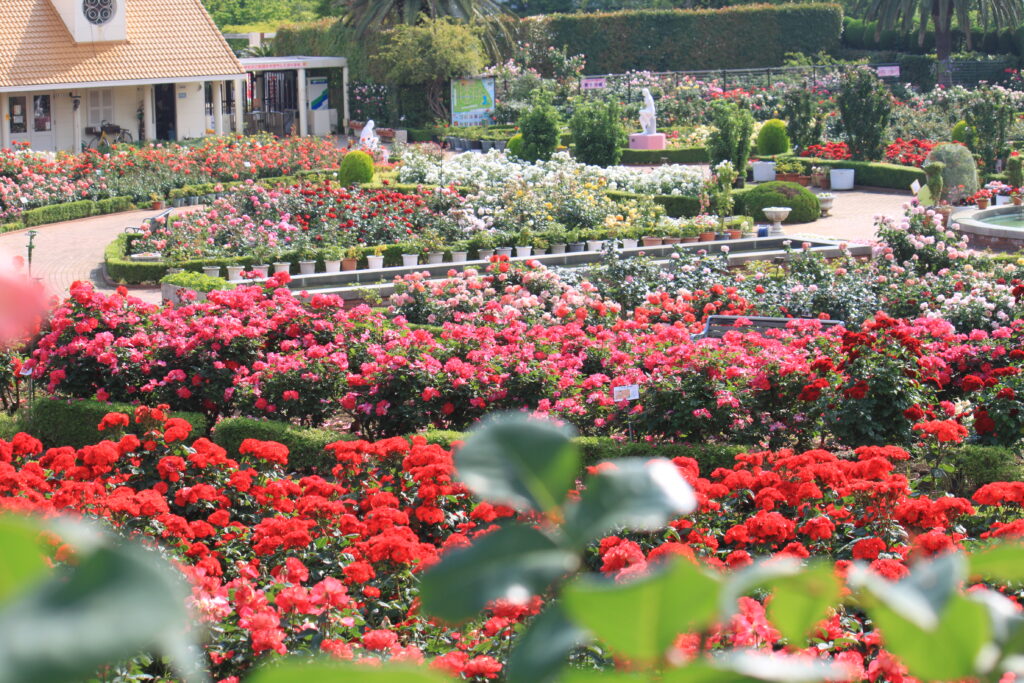 春(5月上旬~6月上旬)と秋(10月上旬~11月上旬)には見頃を迎え、多彩な品種のバラが園内を彩ります。