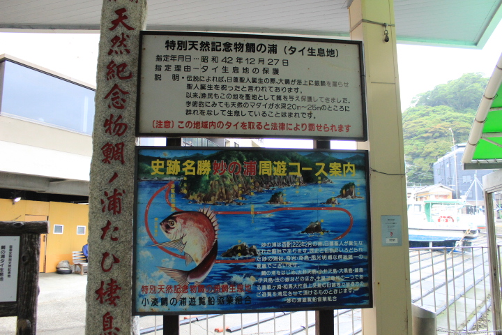 遊覧船は、通常30〜150メートルの深海に生息するマダイが、浅瀬の海面に群れをなして現れるという、世界的にも珍しい現象を観察することができます。船の縁を叩くと、鯛たちが海面に姿を現し、船頭が投げ入れるエサを食べる様子は、訪れる人々を魅了しています。この地域では、鯛は日蓮聖人の化身として大切にされており、漁獲は禁止されています。