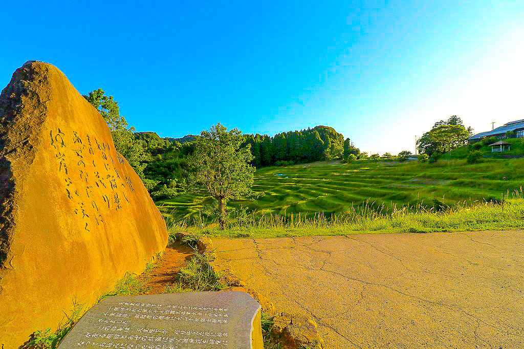 標高90~150mの急傾斜地に、大小375枚の棚田が階段状に広がる景観は、まさに圧巻。その美しさから、1999年に農林水産省の「日本の棚田百選」に選定され、2022年には「つなぐ棚田遺産~ふるさとの誇りを未来へ~」にも認定されました。