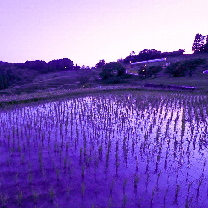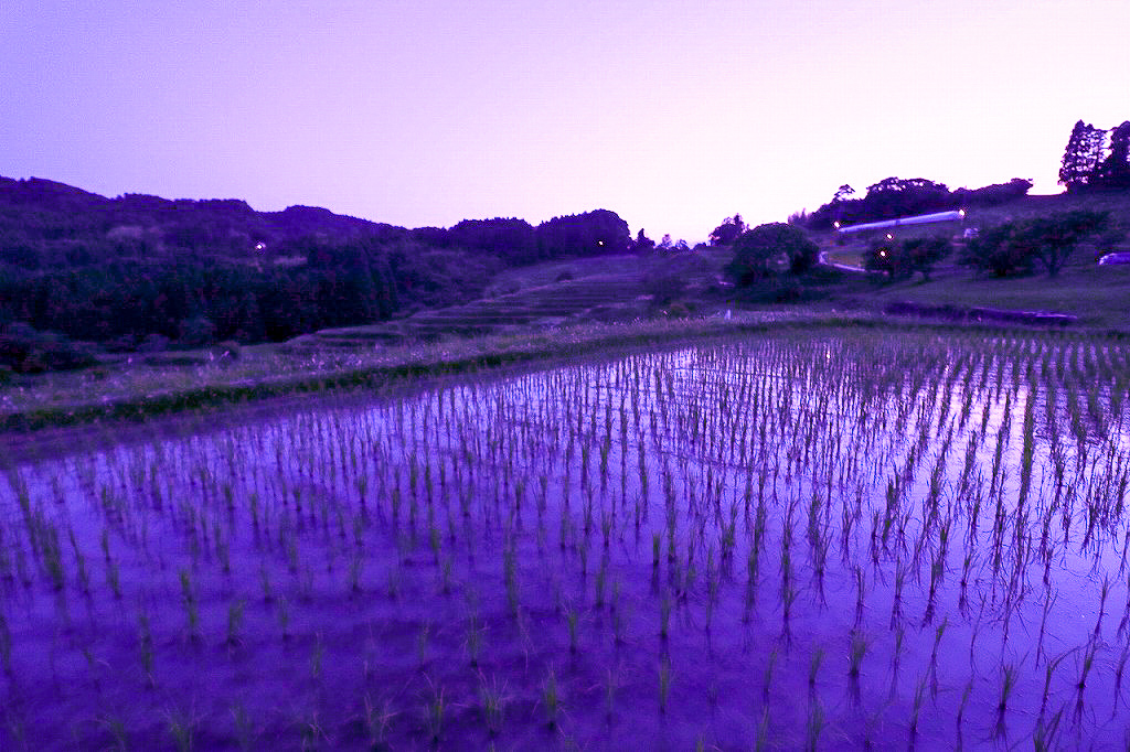 山々に囲まれた美しい棚田。季節ごとに異なる表情を見せる。10 月から 1 月にはライトアップされる。