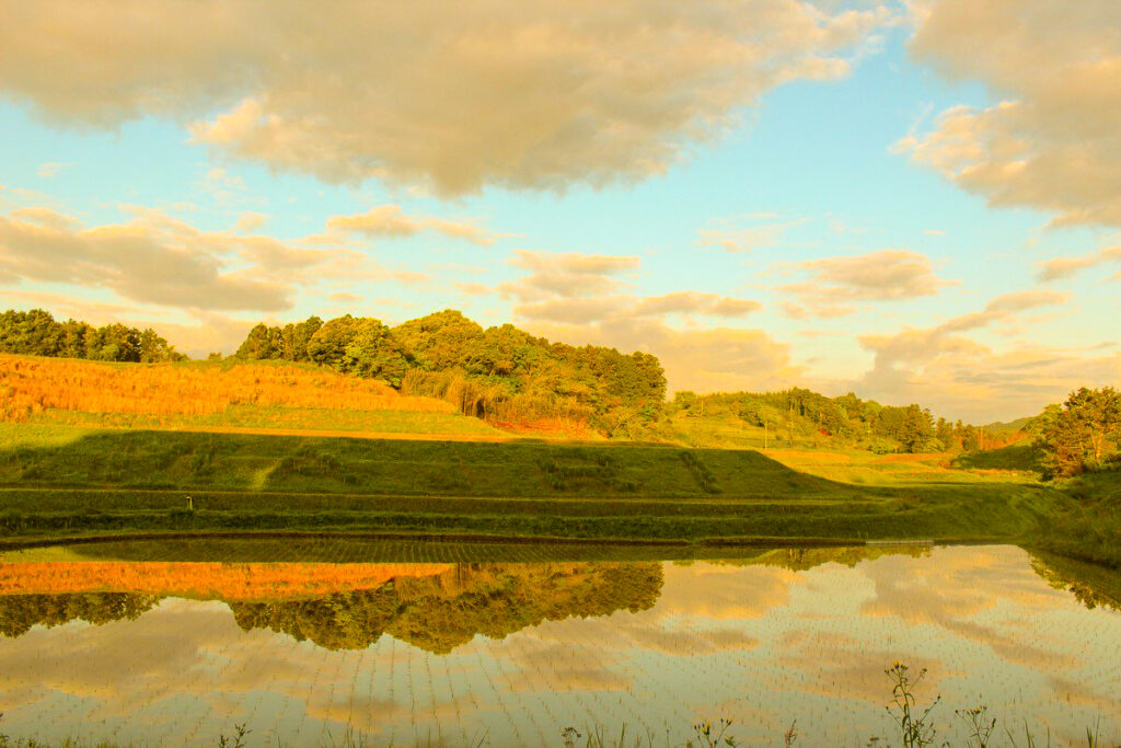 春の田植え前には、水を張った棚田が空を映し出し、夏には緑豊かな稲が風に揺れ、秋には黄金色の稲穂が一面に広がります。冬の雪景色もまた格別で、四季折々の風景が訪れる人々を魅了します。