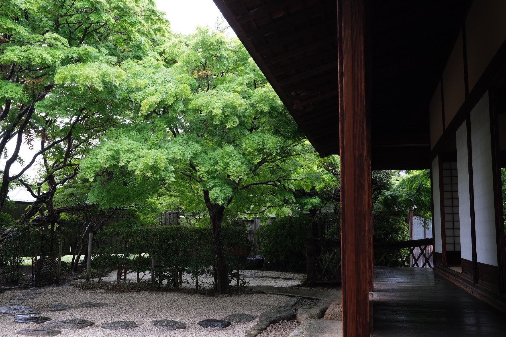 - 一茶庵:茶会や句座に対応する和室と縁側のしつらえ