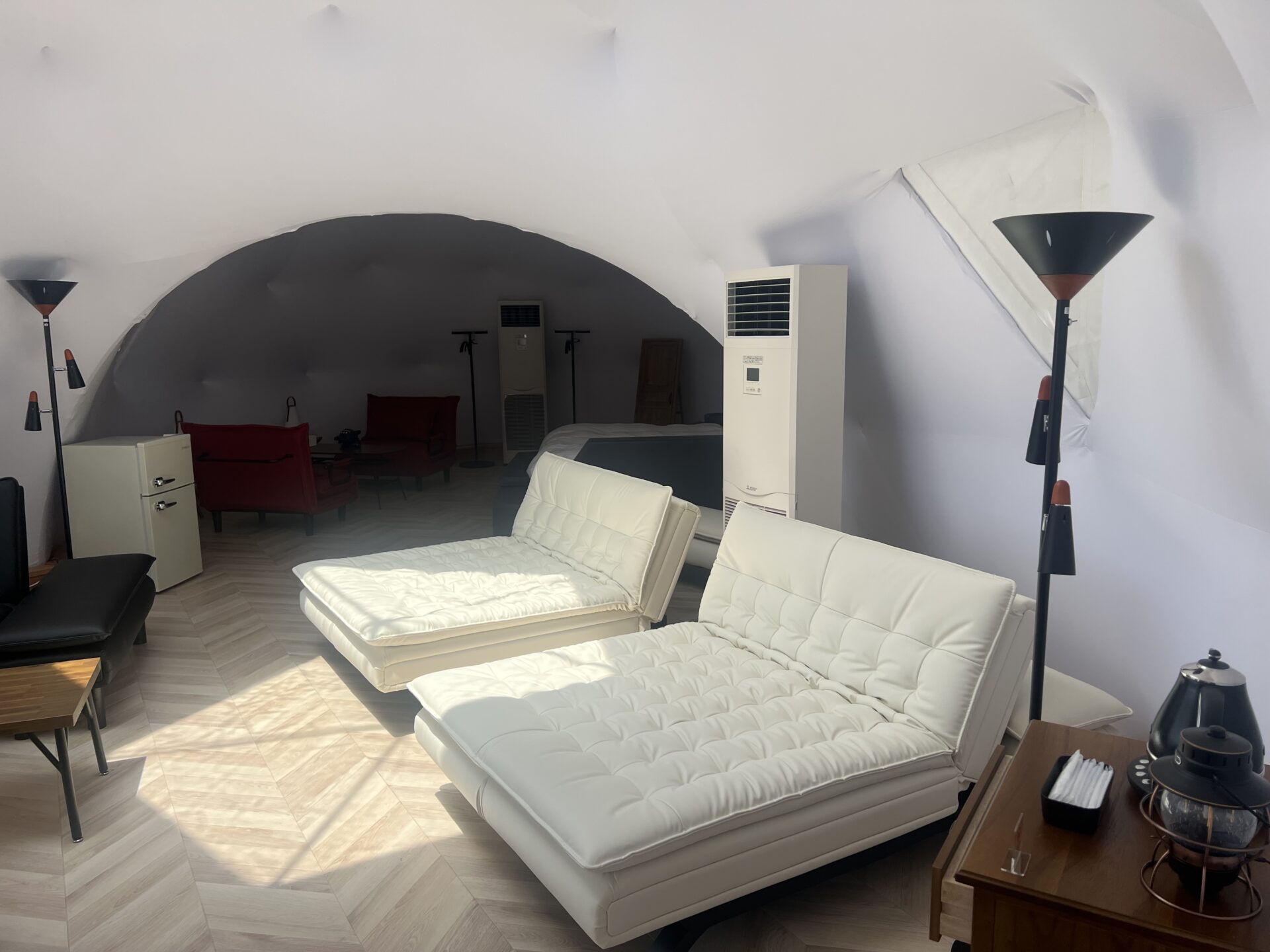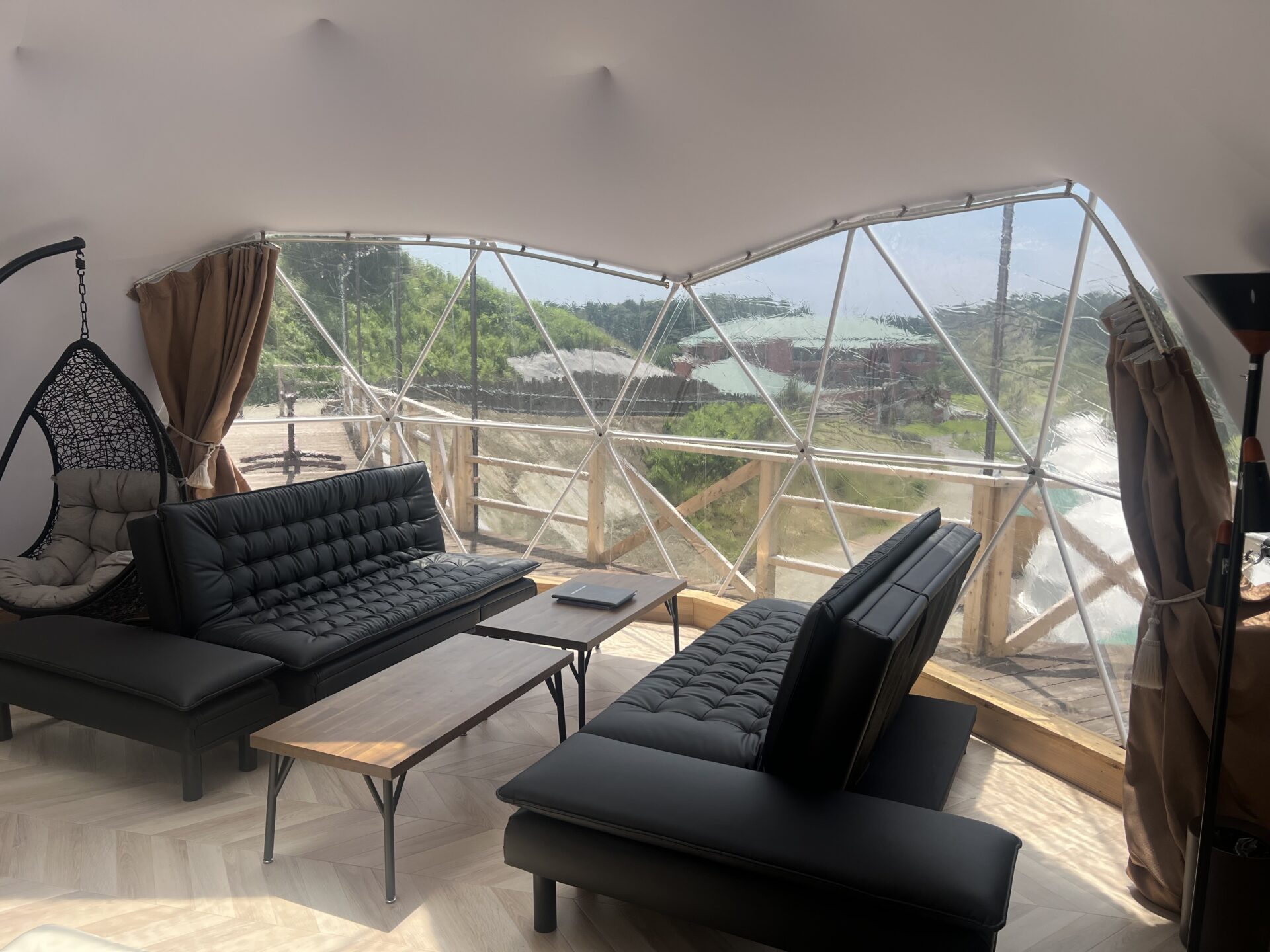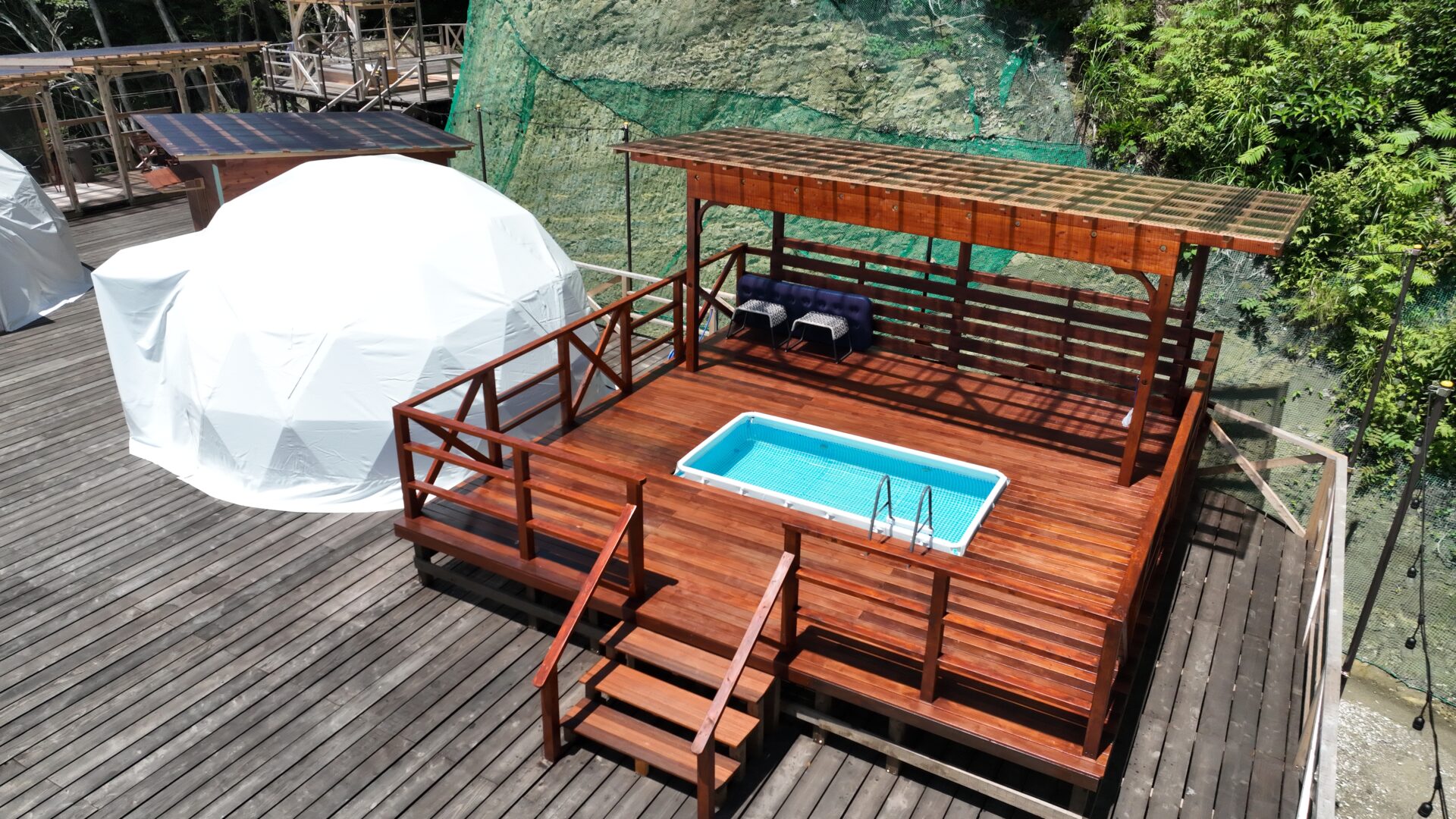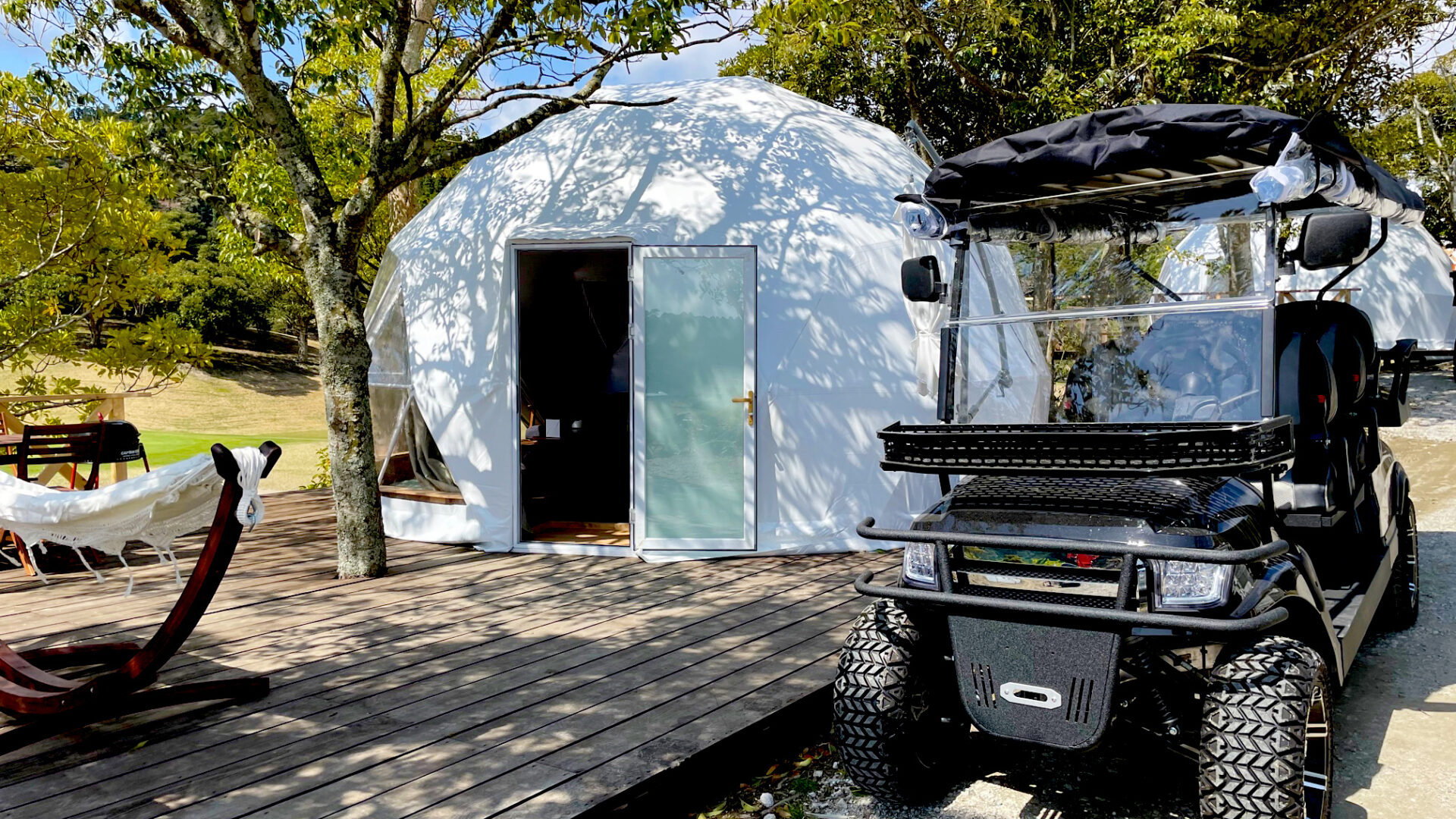 木々に囲まれた広々としたドーム型テントは、冷暖房完備で快適そのもの。バーベキューや星空鑑賞など、大人の贅沢なアウトドア体験が叶います。