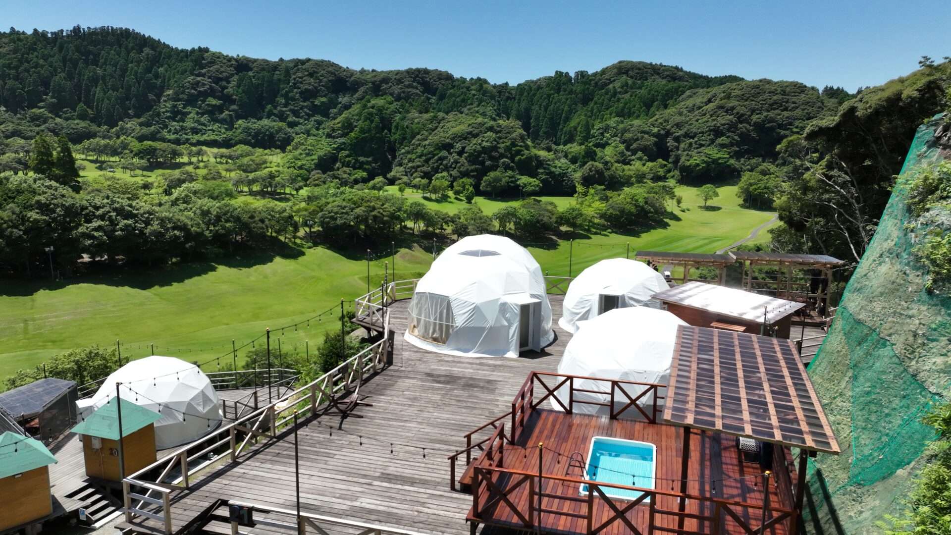 都心から1時間半ほどのアクセスが良い場所にあり、ゴルフはもちろん、グランピングや宿泊、BBQ、温泉、アクティビティまで充実した設備が揃っています。