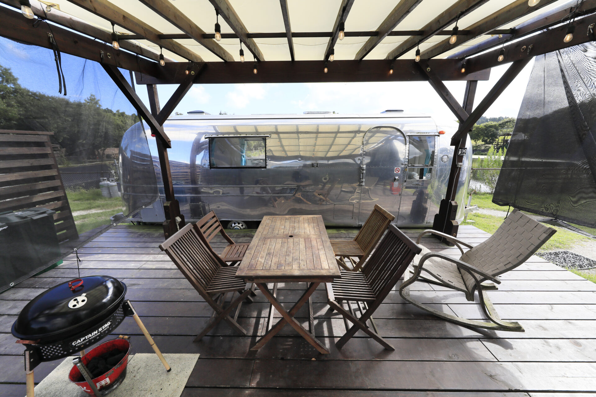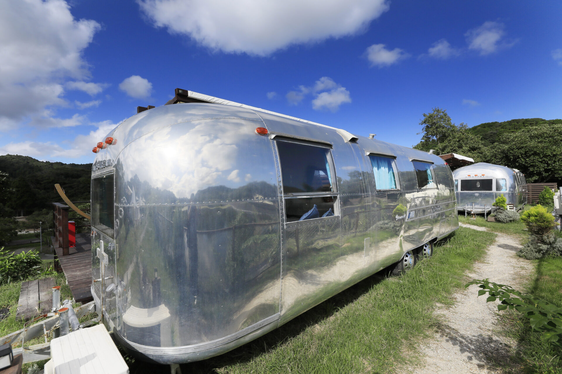 アメリカンヴィンテージを感じるエアストリームは、スタイリッシュなアルミボディが目を引くキャンピングトレーラー。