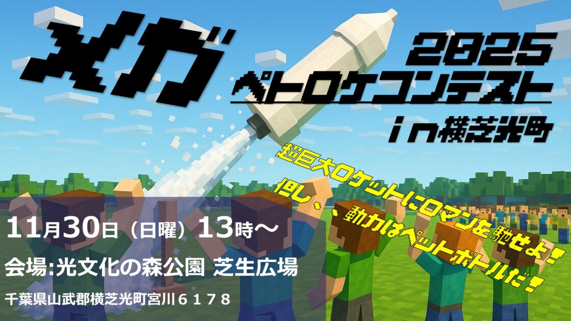 全長4m級の巨大ペットボトルロケットを飛ばす!! この触れ込みだけでもワクワクするイベント『2025 メガ・ペトロケコンテスト in 横芝光町』が、千葉県横芝光町「光文化の森公園 芝生広場」で開催される。日程は2025年11月30日(日)、お見逃しなく!