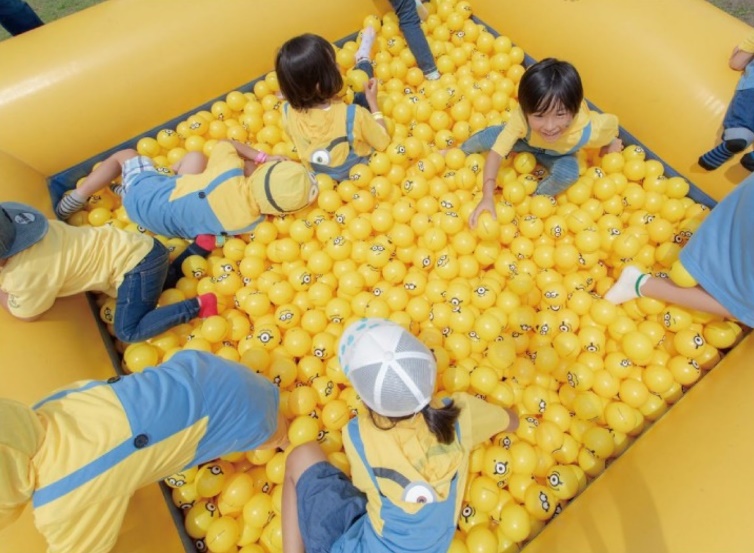 イベントの目玉はサンセットビーチの砂浜に展開される大型スライダーなどのエア遊具。そのほかにもミニオンズランならではのアトラクションがたくさん! とびきり可愛いフォトスポットでの撮影もできます。