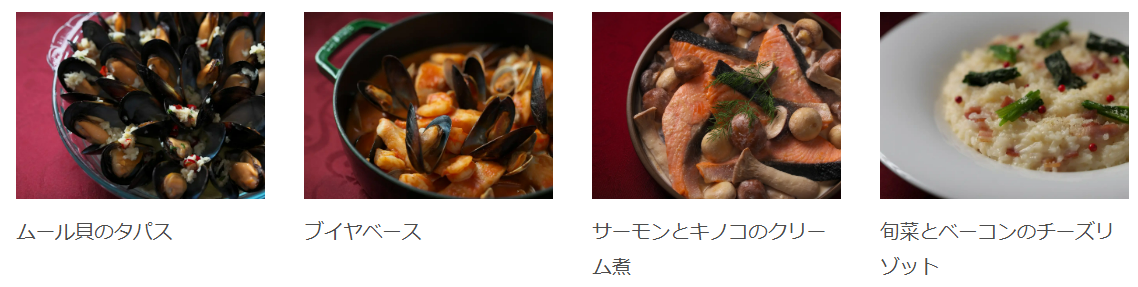 それではビュッフェに並ぶメニューを、ほんの一部だけど画像で紹介!(上の画像) ブイヤベースやサーモンとキノコのクリーム煮など、この時期ならではのあたたか料理も揃っており、画像を見ただけでお腹が……グゥ。