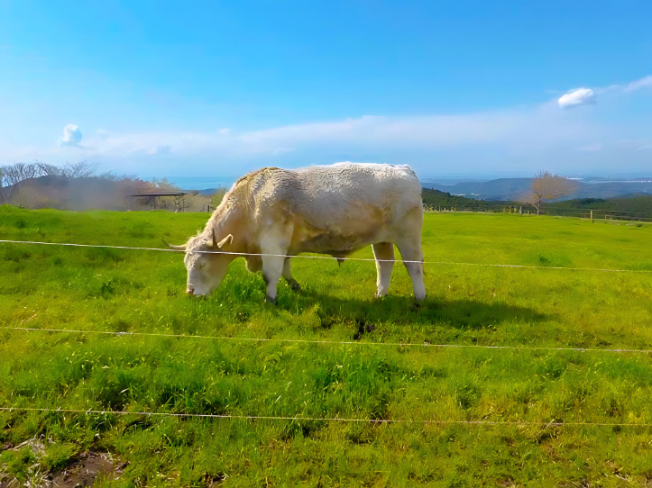 牛の一種のホワイトベルティットギャラウェイは、日本でマザー牧場にしかいない貴重な牛。
