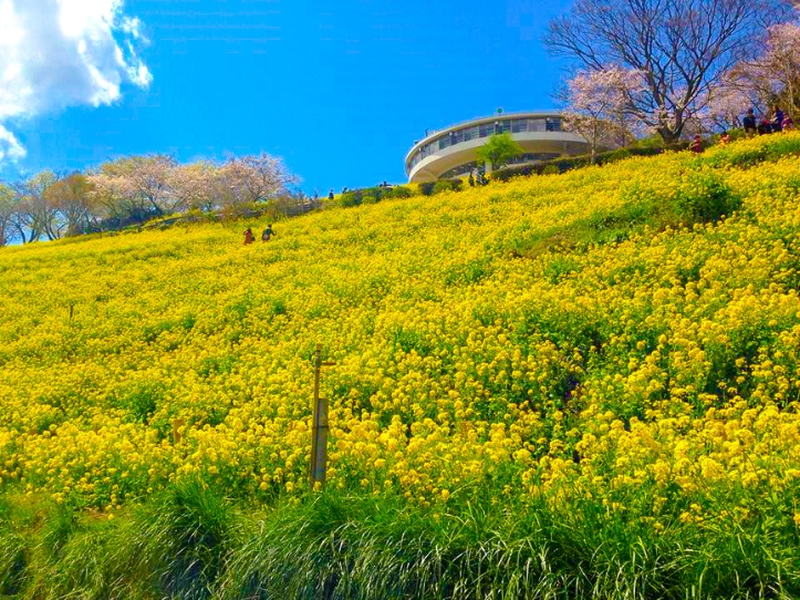 毎年春になると約350万本もの菜の花が視界いっぱいに咲き誇り、見事な黄色の絨毯ができあがります。
