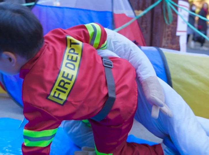 対象:参加に年齢制限はございませんが、消防服は110cmサイズ(主に小学校低学年向け)です。当日飛び込み参加も可能!消防服レンタル確保のため、安心の事前予約も承っております。