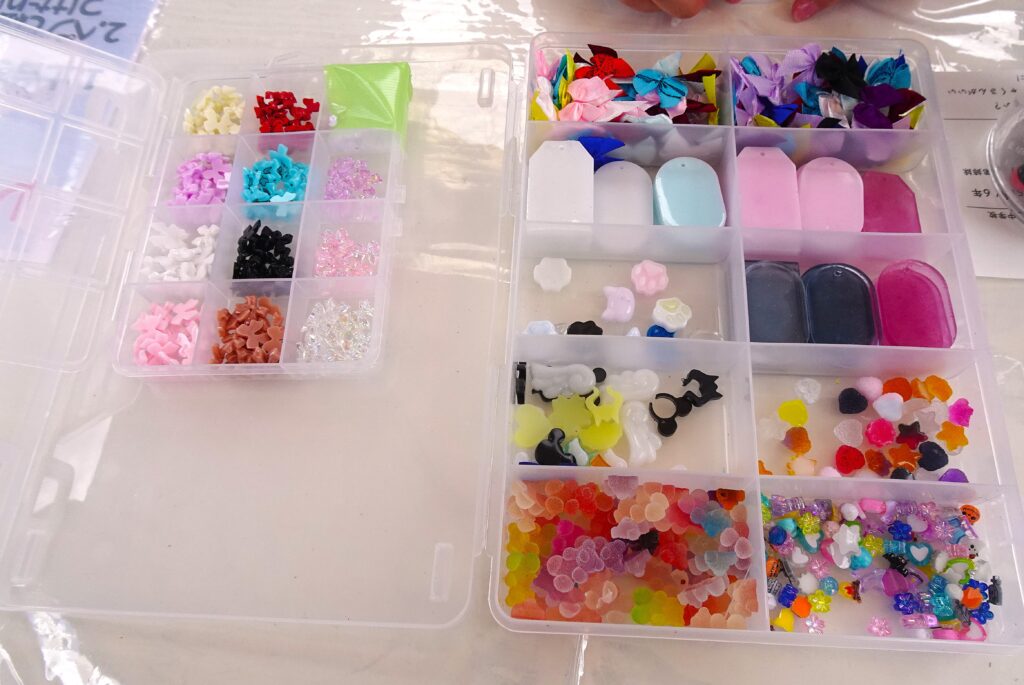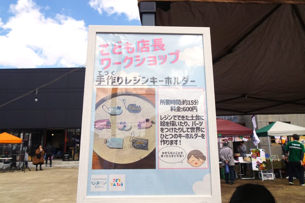 「こども店長」のブースでは、手作りレジンのキーホルダーを作るワークショップをしていました。カラフルなプレートの上にかわいい飾りをのせてオリジナルのキーホルダーを作ります。私も参加することにしました。とても楽しみです。