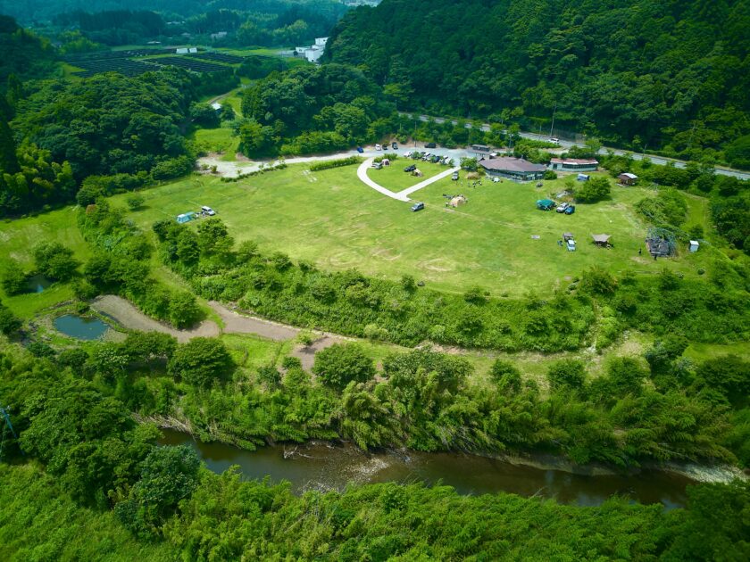 33,000平方メートルという広大な場所(東京ドームの8割ほどの広さ)に、ふかふか天然芝が広がるフリーサイトキャンプ場。