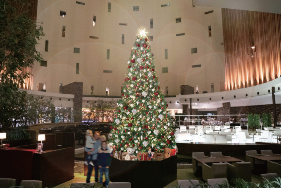 非日常感を演出するこのデザインに加え、12月25日(木)まで、ロビーには高さ約6mのクラシックで壮大な雰囲気のクリスマスツリーがあり、特別感に浸れる!