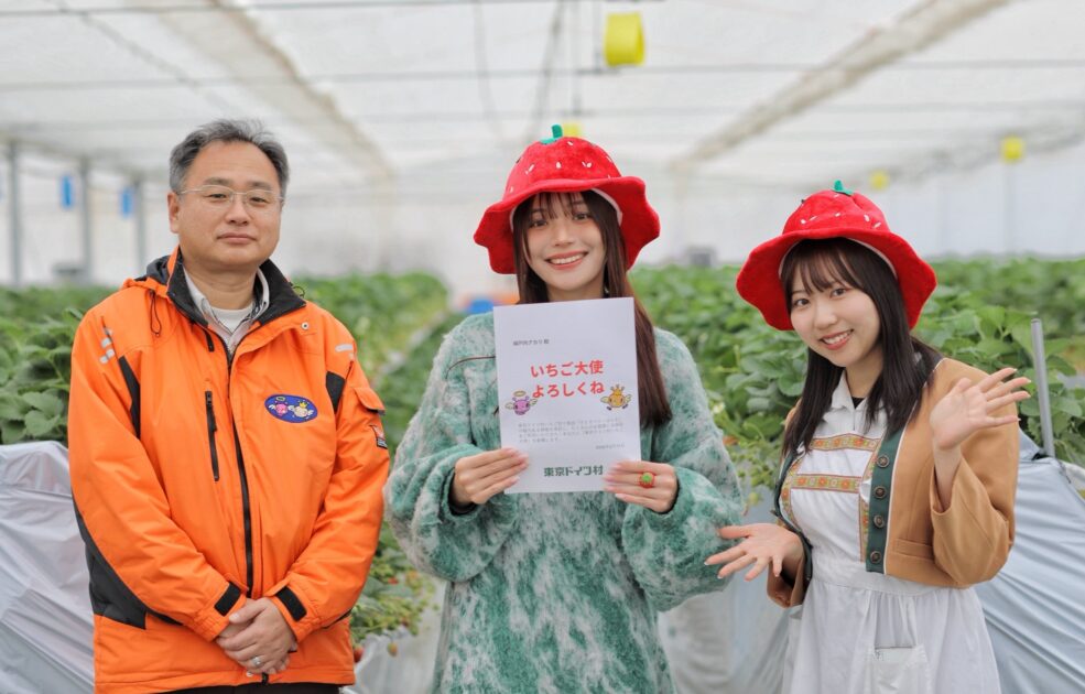 イチゴ狩り施設『すとろべりーはんと』誕生を記念し、さらなる認知度アップに向けて、モデルやインフルエンサーとして活躍中の城戸内アカリさんが、初代「東京ドイツ村いちご大使」に任命されたというトピックも!